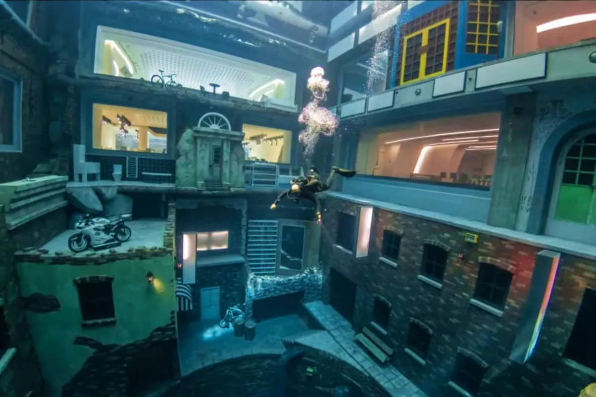 Deep Dive Dubai: Explore the world's deepest pool (60m), home to a massive underwater "Sunken