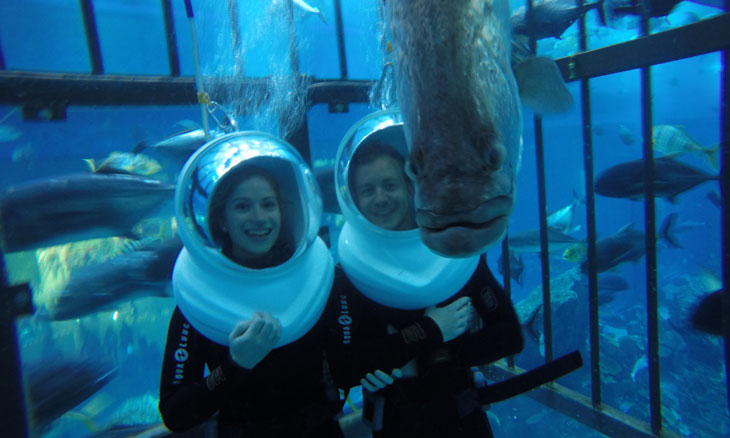 Experience a massive shark tunnel and exotic marine life at the Dubai Mall.