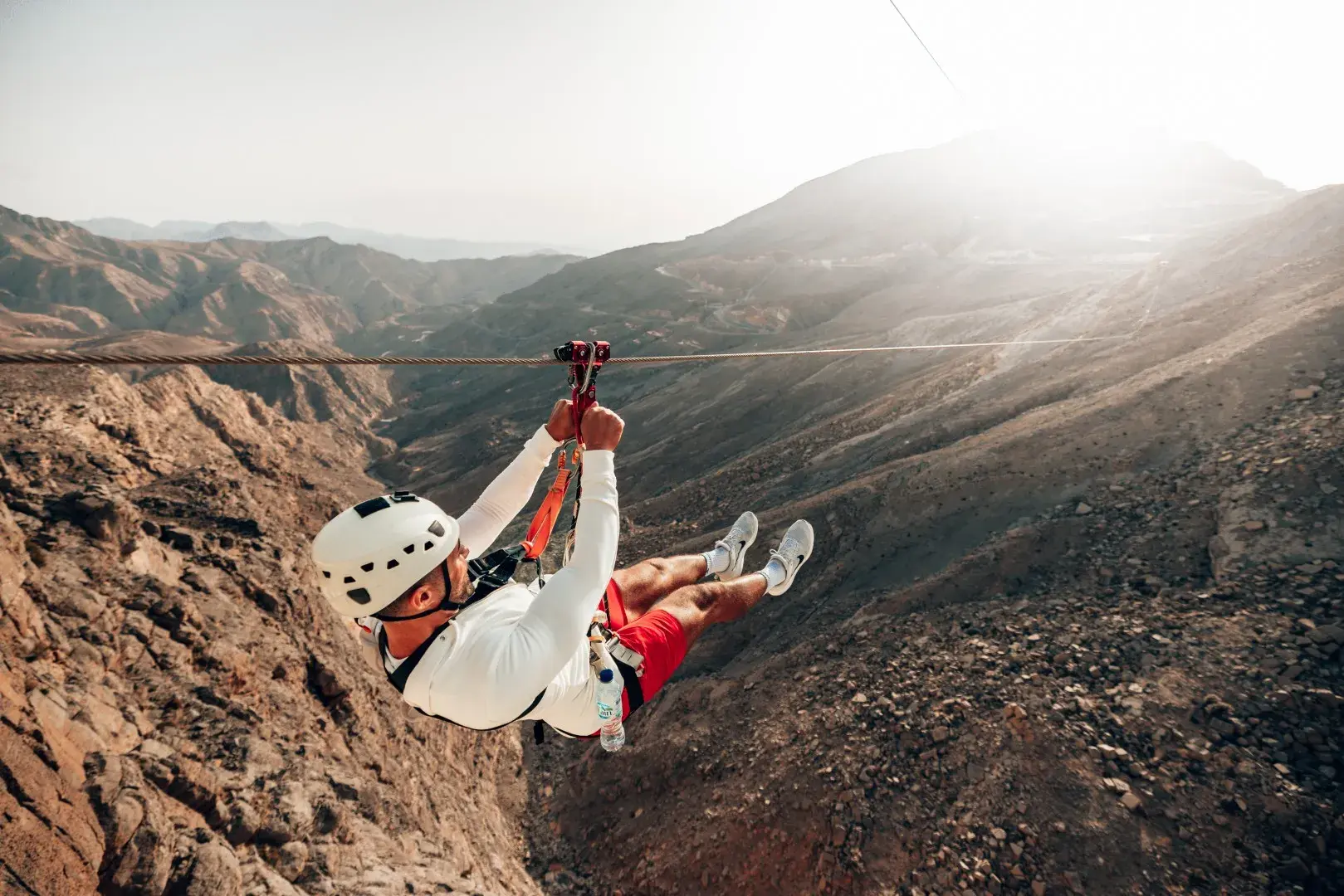 Soar through the Hajar Mountains on the Jebel Jais Sky Tour, a thrilling multi-zipline adventure