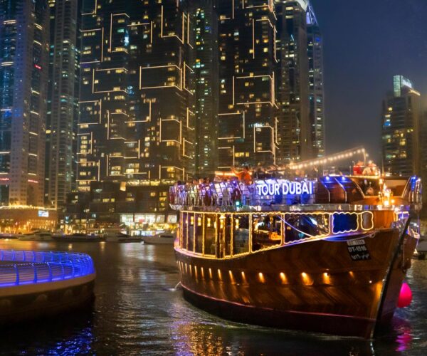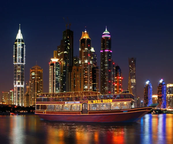 Step into a world of elegance and Arabian charm with the Dhow Cruise Dinner – Marina by GoJetter Travel and Tours. This iconic evening experience combines the traditional beauty of a wooden Arabian dhow with the ultra-modern, glittering skyline of Dubai Marina, creating the ultimate romantic and cultural outing.