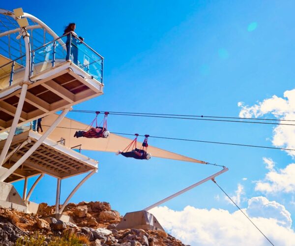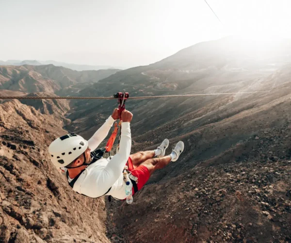Experience the Jebel Jais Flight, the world’s longest zipline at 2,832 meters. Soar like a superhero at speeds up to 130 km/h across the majestic Hajar Mountains from a launch platform 1,680 meters high. This Guinness World Record-breaking adventure features twin cables for side-by-side flying and concludes with a thrilling landing on a suspended platform.