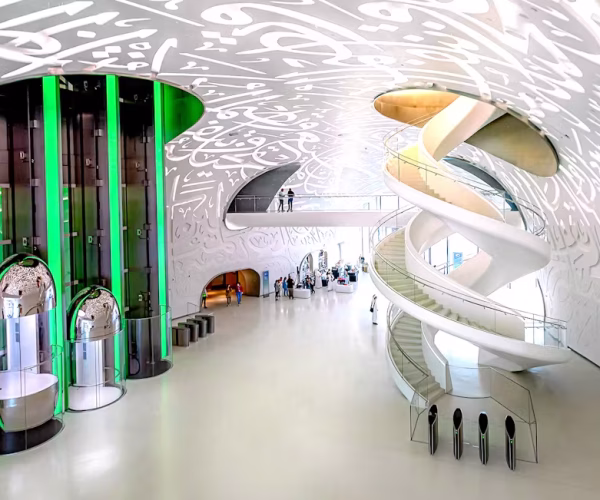 • Architectural Marvel: Admire the torus-shaped structure—an engineering feat with no internal columns—adorned with stunning Arabic calligraphy featuring quotes by H.H. Sheikh Mohammed bin Rashid Al Maktoum.